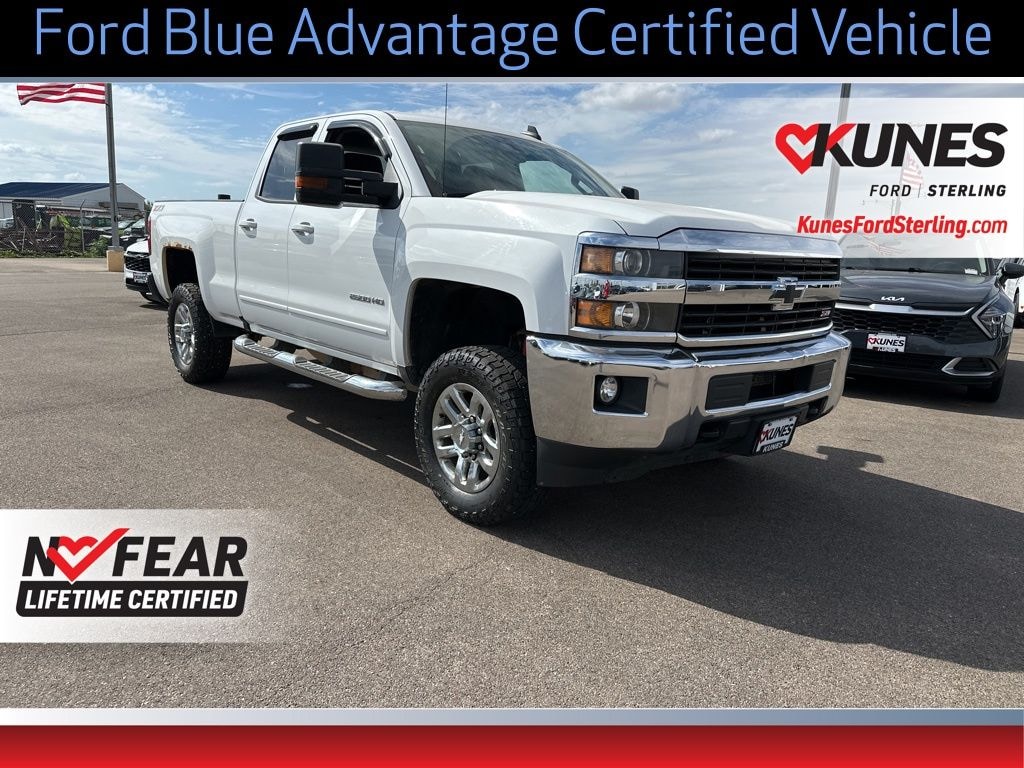 REMOTE START, ADVANCED SAFETY Tech, REAR PARK ASSIST, BACKUP CAMERA, SIRIUSXM RADIO, BLUETOOTH, Silverado 2500HD LT, Ford Blue Advantage: Blue Certified Certified, 4D Double Cab, Vortec 6.0L V8 SFI Flex Fuel VVT, 4WD, Summit White, Black Cloth, 10-Way Power Driver's Seat Adjuster, 110-Volt AC Power Outlet, 17" Machined Aluminum Wheels, 18" Chromed Aluminum Wheels, 220 Amps Alternator, 4-Wheel Disc Brakes, 4.10 Rear Axle Ratio, 4.2" Diagonal Color Display Driver Info Center, 4" Round Chromed Assist Steps (LPO), 6 Speakers, 6-Speaker Audio System, ABS brakes, Air Conditioning, All Star Edition, Alloy wheels, AM/FM radio: SiriusXM, Auto-Dimming Inside Rear-View Mirror, Black Power-Adjustable Heated Outside Mirrors, Body Color Door Handles, Body-Color Bodyside Moldings, Body-Color Mirror Caps, Body-Color Power-Adjustable Heated Outside Mirrors, Bodyside moldings, Brake assist, Bumpers: chrome, Camper & 5th Wheel Trailer Wiring Provisions, CD player, Cloth Seat Trim, Color-Keyed Carpeting Floor Covering, Compass, Deep-Tinted Glass, Delay-off headlights, Driver & Front Passenger Vanity Mirror Visors, Driver door bin, Driver vanity mirror, Dual front impact airbags, Dual front side impact airbags, Dual-Zone Automatic Climate Control, Electric Rear-Window Defogger, Electronic Shift Transfer Case, Electronic Stability Control, Emergency communication system: OnStar Guidance, EZ-Lift & Lower Tailgate, Front & Rear All-Weather Floor Mats, Front 40/20/40 Reclining Split-Bench Seat, Front anti-roll bar, Front Center Armrest w/Storage, Front Halogen Fog Lamps, Front License Plate Kit, Front reading lights, Front wheel independent suspension, Fully automatic headlights, HD Radio, Heated door mirrors, Heavy-Duty Trailering Equipment, Hill Descent Control, Illuminated entry, Integrated Trailer Brake Controller, Leather-Wrapped Steering Wheel, LED Cargo Box Lighting, Low tire pressure warning, LT Plus Package, Manual Tilt-Wheel/Telescoping Steering Column, Occupant sensing airbag, Off-Road Z71 Package, OnStar 4G LTE Wi-Fi Hotspot, OnStar 6 Month Guidance Plan, Outside temperature display, Overhead airbag, Overhead console, Panic alarm, Passenger cancellable airbag, Passenger door bin, Passenger vanity mirror, Power door mirrors, Power steering, Power windows, Power Windows w/Driver Express Up & Down, Power-Adjustable Pedals For Accelerator & Brake, Preferred Equipment Group 1LT, Premium audio system: Chevrolet MyLink, Provision for Cab Roof-Mounted Lamp/Beacon, Radio: AM/FM Stereo w/Chevrolet MyLink, Rear 60/40 Folding Bench Seat (Folds Up), Rear reading lights, Rear step bumper, Rear Vision Camera w/Dynamic Guide Lines, Rear Wheelhouse Liners, Remote Keyless Entry, Remote keyless entry, Remote Locking Tailgate, Remote Vehicle Starter System, Single Slot CD/MP3 Player, SiriusXM Satellite Radio, Snow Plow Prep Package, Speed control, Split folding rear seat, Standard Suspension Package, Steering Wheel Audio Controls, Steering wheel mounted audio controls, Tachometer, Tilt steering wheel, Traction control, Trip computer, Ultrasonic Rear Park Assist, Unauthorized EntryTheft Deterrent System, Variably intermittent wipers, Voltmeter, Silverado 2500HD LT, 4D Double Cab, Vortec 6.0L V8 SFI Flex Fuel VVT, 4WD, Summit White, Black Cloth.
