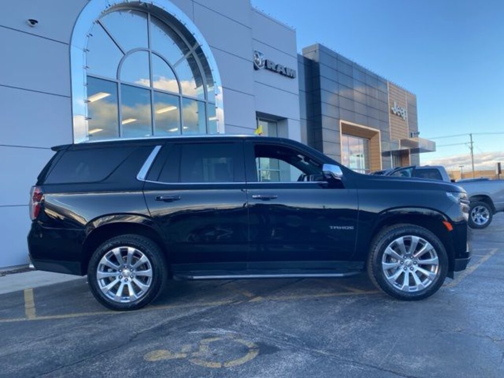 Black 2023 Chevrolet Tahoe Premier Premier Diversified Certified Pre-Owned GO - 3 Months/3,000 Mile Maximum Care Coverage, with Kunes' No Fear Lifetime Certified Preowned Warranty included!, Comes with all these great features:, ** Apple CarPlay / Android Auto, **Advanced Safety Features, **Adaptive Cruise Control, ** Navigation, ** Security System, **Heated and Cooled Seats, **Heated Steering wheel, **Heated Rear Seating, 2nd Row Captain Chairs, **Rear Entertainment System, 3rd Row Seating, ** Steering Wheel Controls, ** Premium Wheels, ** Keyless Entry, ** Automatic Headlights, ** Bluetooth, ** Back up Camera, **Rear Park Assist, **SIRIUS XM, Remote Start, 1st & 2nd Row Color-Keyed Carpeted Floor Mats, 2-Speed Active Electronic AutoTrac Transfer Case, 3.23 Rear Axle Ratio, 3rd Row 60/40 Power-Folding Split-Bench Seat, 3rd row seats: split-bench, Apple CarPlay/Android Auto, Auto-dimming door mirrors, Auto-leveling suspension, Bright Front & Rear Door Sill Plates, Chrome Door Handles w/Body-Color Strip, Chrome Mirror Caps, Color-Keyed Carpeting Floor Covering, Compass, Delay-off headlights, Driver & Front Outboard Passenger Airbags, Driver door bin, Driver vanity mirror, Dual Exhaust System, Emergency communication system: OnStar and Chevrolet connected services capable, Enhanced Driver Information Center, Floor Console, Front Bucket Seats, Front Center Armrest, Front High-Back Reclining Bucket Seats, Front reading lights, Fully automatic headlights, Hands-Free Rear Power Programmable Liftgate, HD Surround Vision, Heated & Ventilated Driver & Front Passenger Seats, Heated 2nd Row Outboard Seats, Heated Driver & Front Passenger Seats, Hill Descent Control, Illuminated entry, Infotainment Display, Inside Rearview Auto-Dimming Rear Camera Mirror, Low tire pressure warning, Magnetic Ride Control Suspension, Navigation System, Outside Heated Power-Adjustable Mirrors, Overhead console, Panic alarm, Passenger door bin, Passenger vanity mirror, Perforated Leather Seat Trim, Power Liftgate, Power Release 2nd Row Bucket Seats, Power Tilt & Telescopic Steering Column, Rear anti-roll bar, Rear reading lights, Rear Seat Media System, Reverse Automatic Braking, Safety Alert Seat, Security system, Set of 4 Wheel Locks (LPO), Speed-sensing steering, Split folding rear seat, Spoiler, Steering wheel memory, Steering wheel mounted audio controls, Tachometer, Telescoping steering wheel, Tilt steering wheel, Trailer Side Blind Zone Alert, Trip computer, Universal Home Remote, Voltmeter, Wheels: 22" x 9" Polished Aluminum (RVA), Wrapped Steering Wheel.