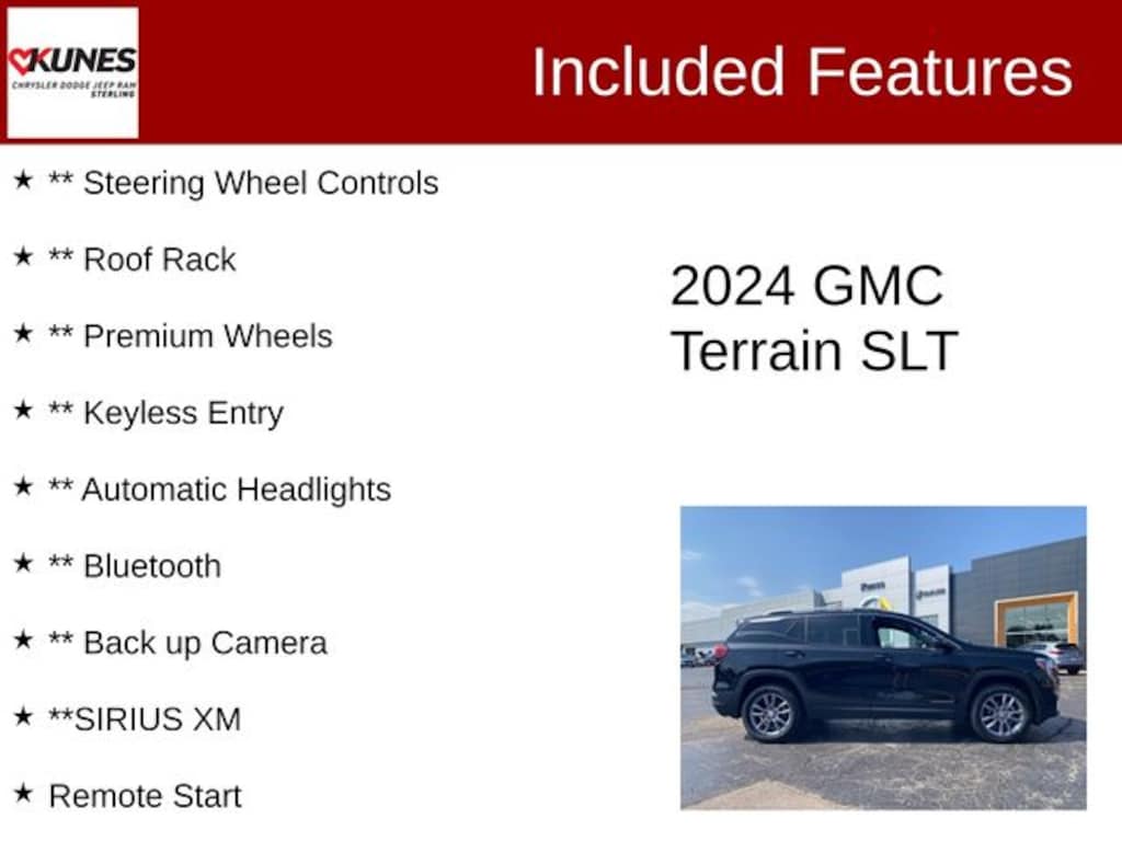 Discover the perfect blend of style, technology, and capability with this 2024 GMC Terrain SLT. This stunning SUV boasts a sleek Ebony Twilight Metallic exterior, complemented by a host of premium features that elevate your driving experience.