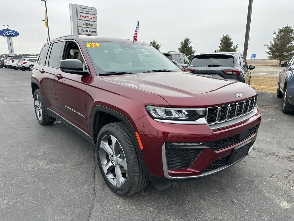 Advanced Safety Features, Adaptive Cruise Control, Apple CarPlay/Android Auto, Bluetooth, Rear View Camera, Rear Park Assist, Leather, Heated Seats, Keyless Entry, Keyless Ignition, Remote Start, Navigation/GPS/NAVI, Sirius/XM, Sunroof/Moonroof, Power Lift Gate, Steering Wheel Controls, Heated Rear Seating, Grand Cherokee Limited, 4D Sport Utility, 2.0L I4 PDI Turbocharged DOHC 16V LEV3-SULEV30 324hp, 8-Speed Automatic, 4WD, Velvet Red Pearlcoat, Wicker Beige/Global Black Artificial Leather, Navigation System, Quick Order Package 2BE Limited, Trailer Tow Package. 2026 Jeep Grand Cherokee Limited Velvet Red Pearlcoat 2.0L I4 PDI Turbocharged DOHC 16V LEV3-SULEV30 324hp 19/26 City/Highway MPG