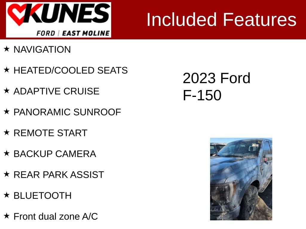 2023 Ford F-150 Tremor Azure Gray Metallic Tri-Coat 3.5L V6 EcoBoost NAVIGATION, HEATED/COOLED SEATS, ADAPTIVE CRUISE, PANORAMIC SUNROOF, REMOTE START, BACKUP CAMERA, REAR PARK ASSIST, BLUETOOTH, 4WD, ABS brakes, Alloy wheels, Compass, Electronic Stability Control, Front dual zone A/C, Heated door mirrors, Heated front seats, Illuminated entry, Low tire pressure warning, Remote keyless entry, Traction control. Odometer is 3777 miles below market average!