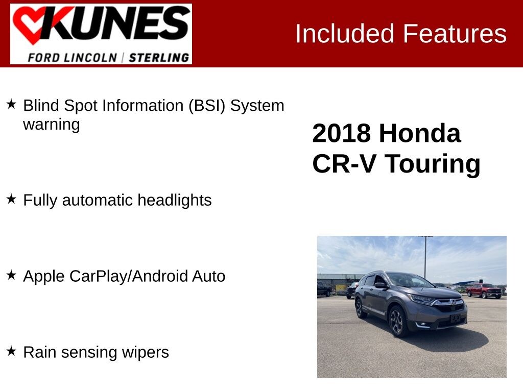 Recent Arrival! 2018 Honda CR-V Touring Gunmetal Metallic Clean CARFAX. Odometer is 49525 miles below market average! 27/33 City/Highway MPG