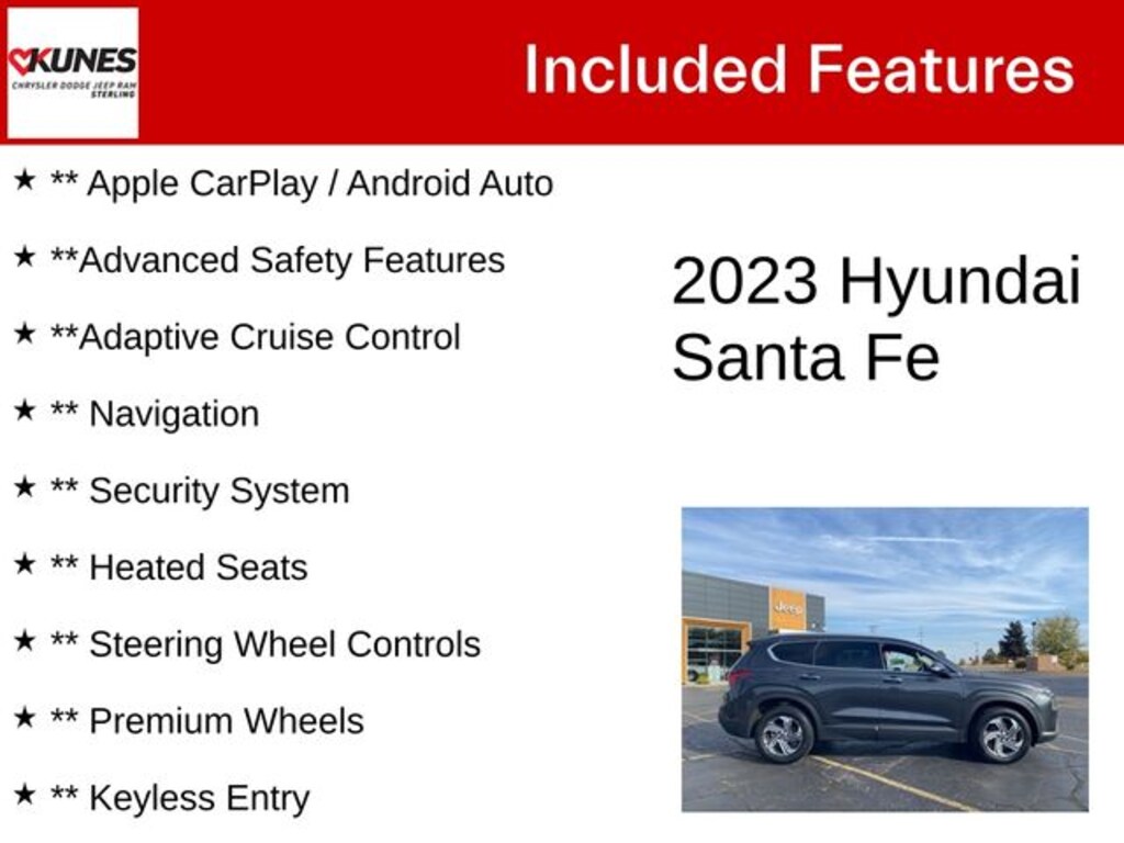 Portofino Gray 2023 Hyundai Santa Fe SEL SEL ** Apple CarPlay / Android Auto, **Advanced Safety Features, **Adaptive Cruise Control, ** Navigation, ** Security System, ** Heated Seats, ** Steering Wheel Controls, ** Premium Wheels, ** Keyless Entry, ** Automatic Headlights, ** Bluetooth, ** Back up Camera, **Rear Park Assist, **SIRIUS XM, Remote Start, 4D Sport Utility, Portofino Gray, Black Cloth, Navigation System, Option Group 01. Recent Arrival!