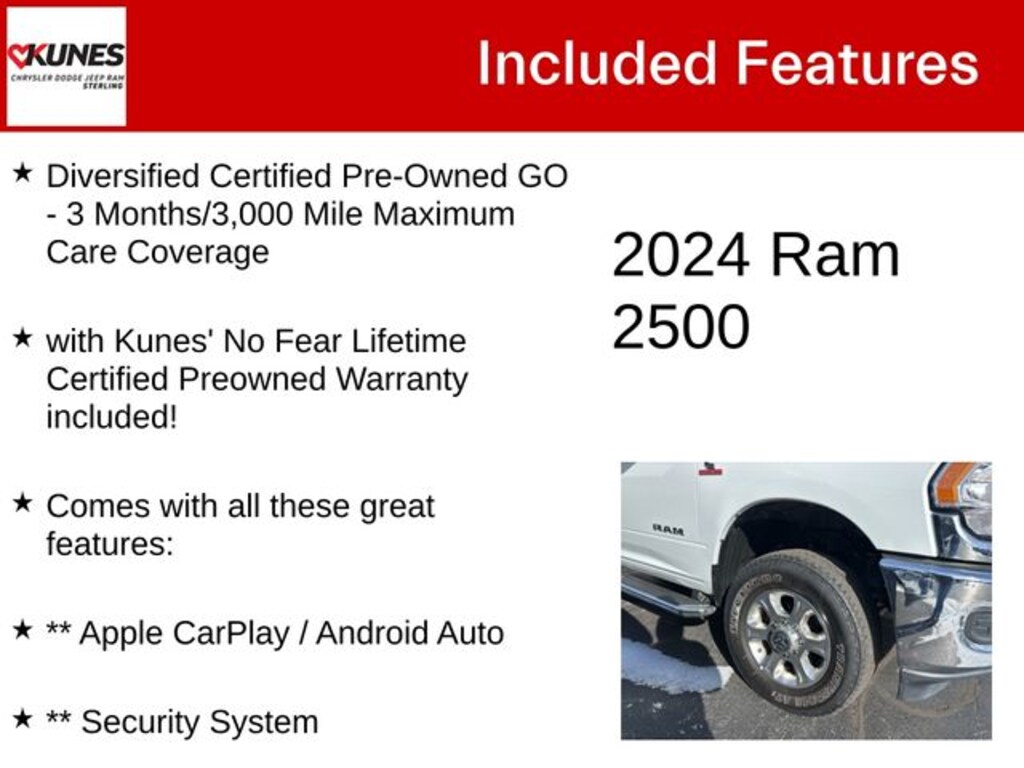 Don't miss your chance to own this exceptional 2024 Ram 2500 Big Horn. With its impressive capabilities, premium features, and Certified Pre-Owned peace of mind, it's the perfect choice for those who demand the best. Visit our showroom today and experience the power and versatility of this remarkable truck for yourself.